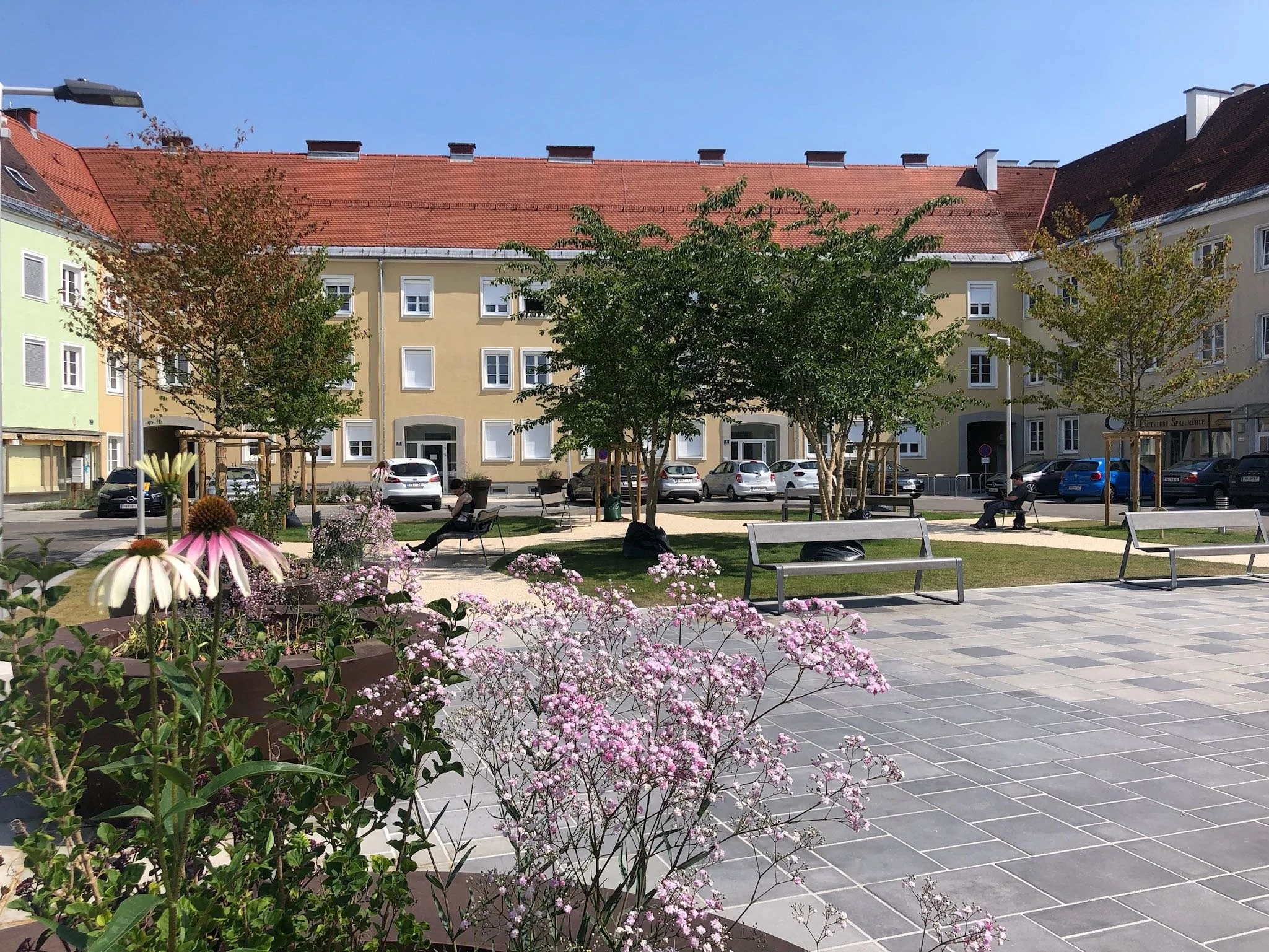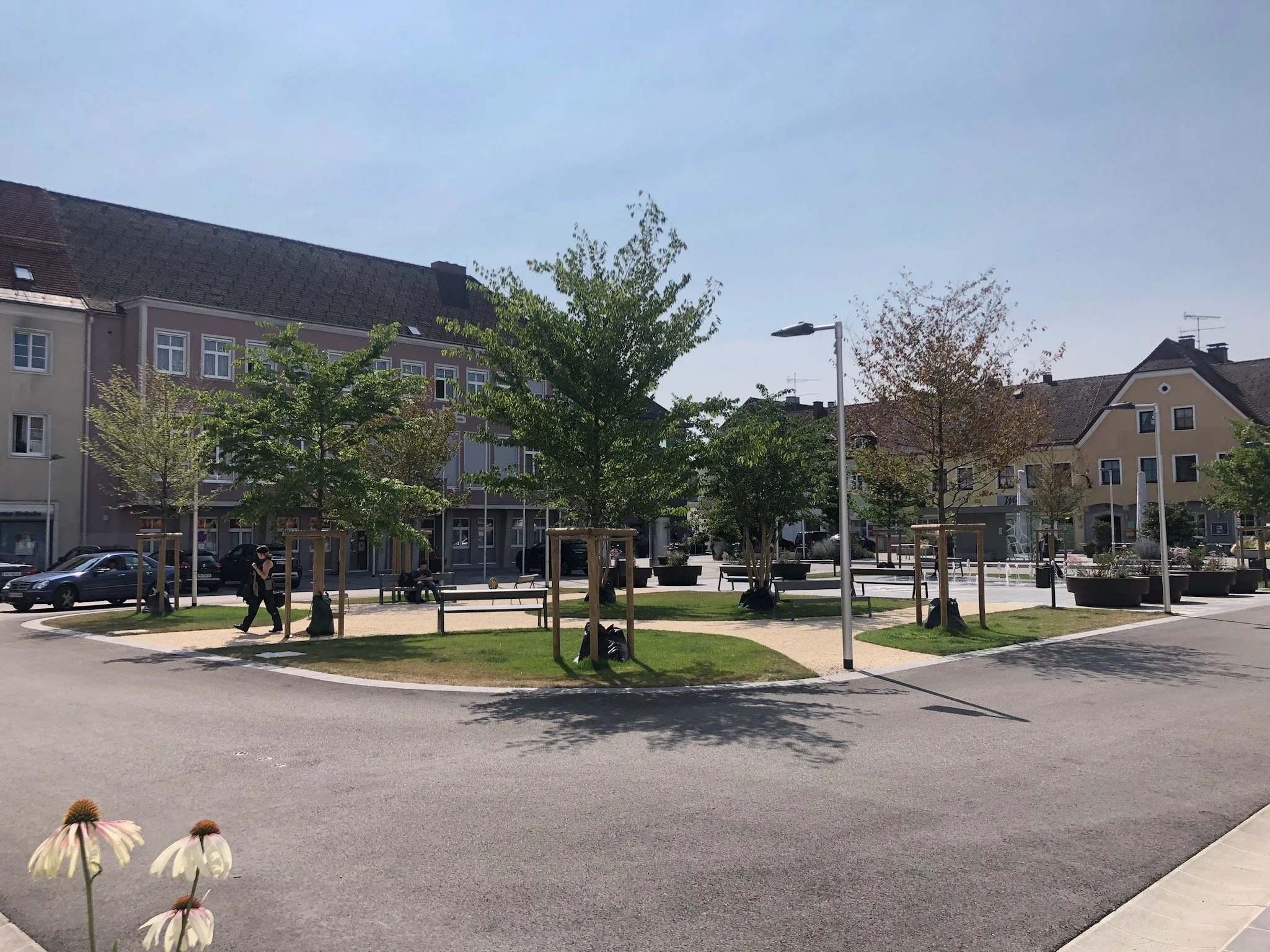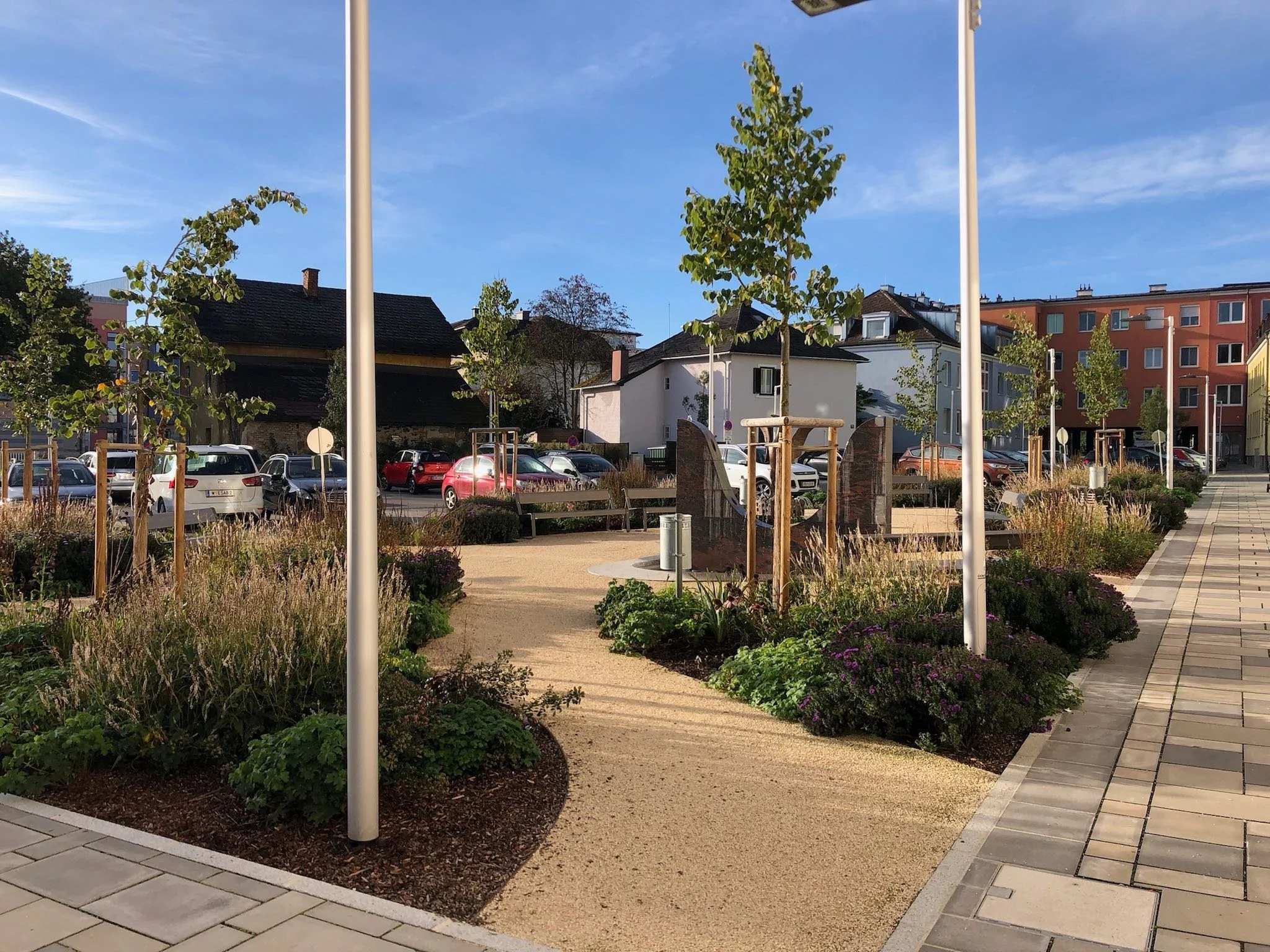 Studio blaugruen konnte im Rahmen der Ausführung die Einbeziehung des Prinzips der Schwammstadt bis zur Umsetzung begleiten. Laufend werden weitere Standorte des Forums errichtet.