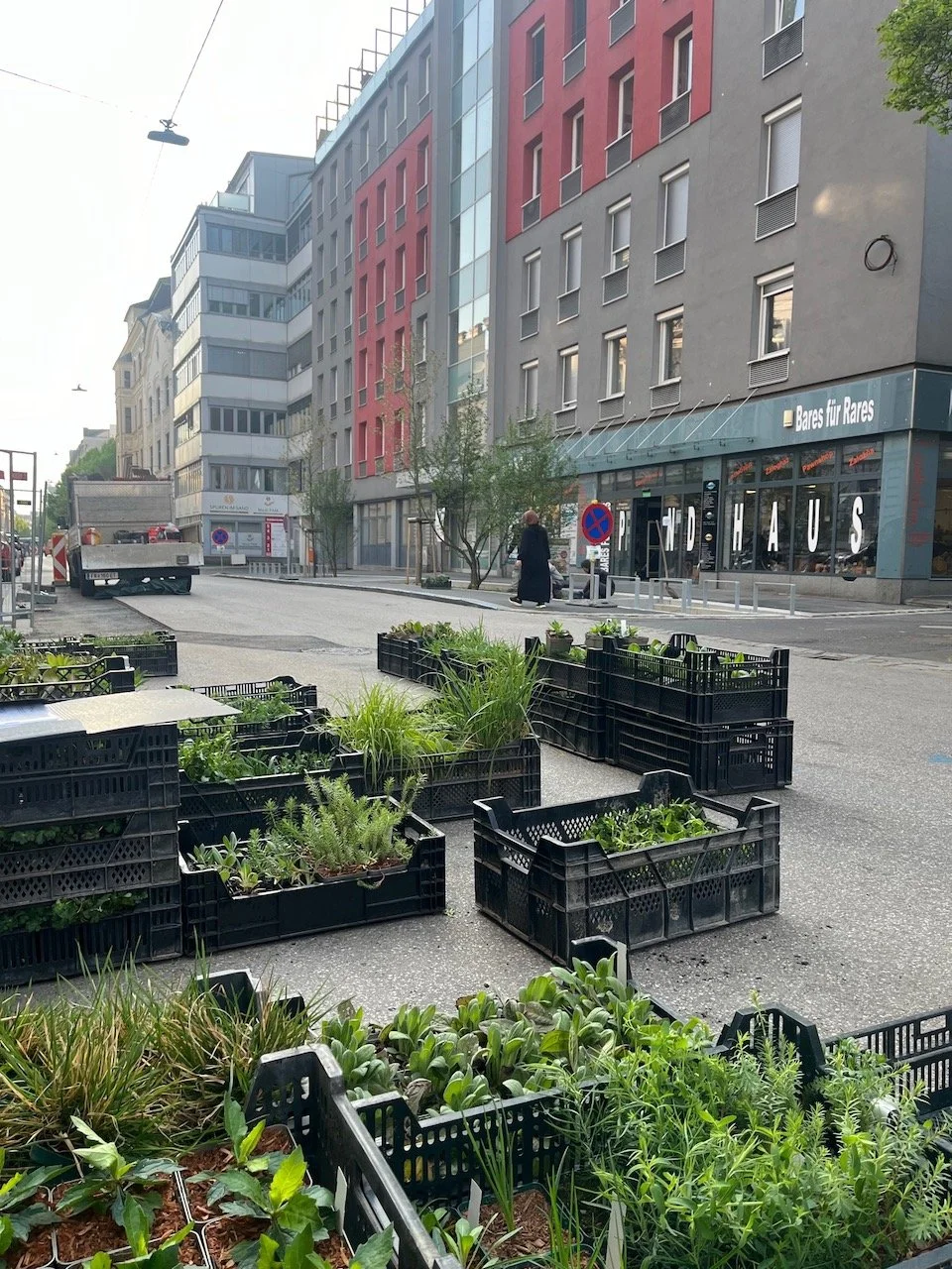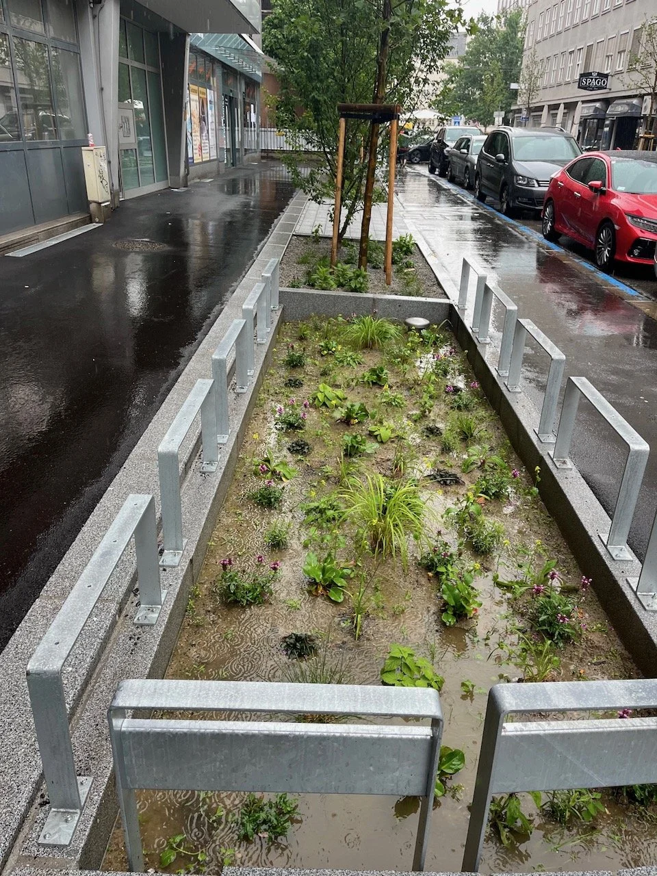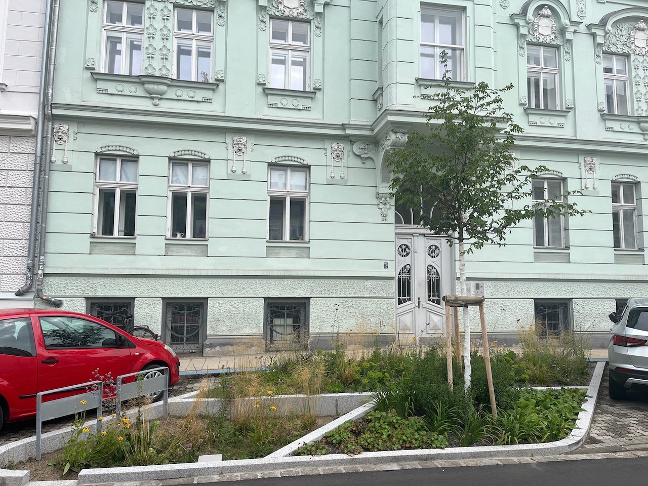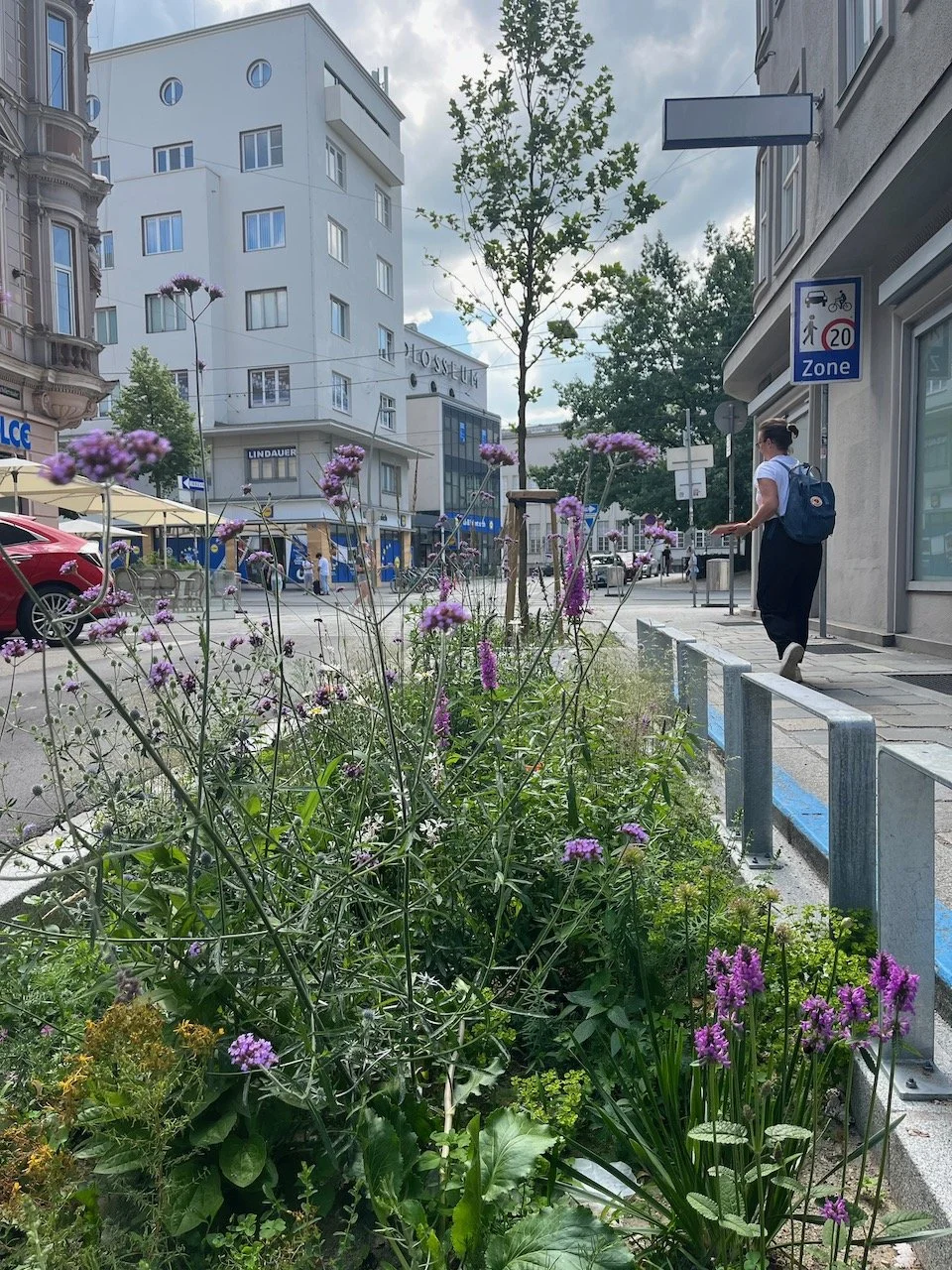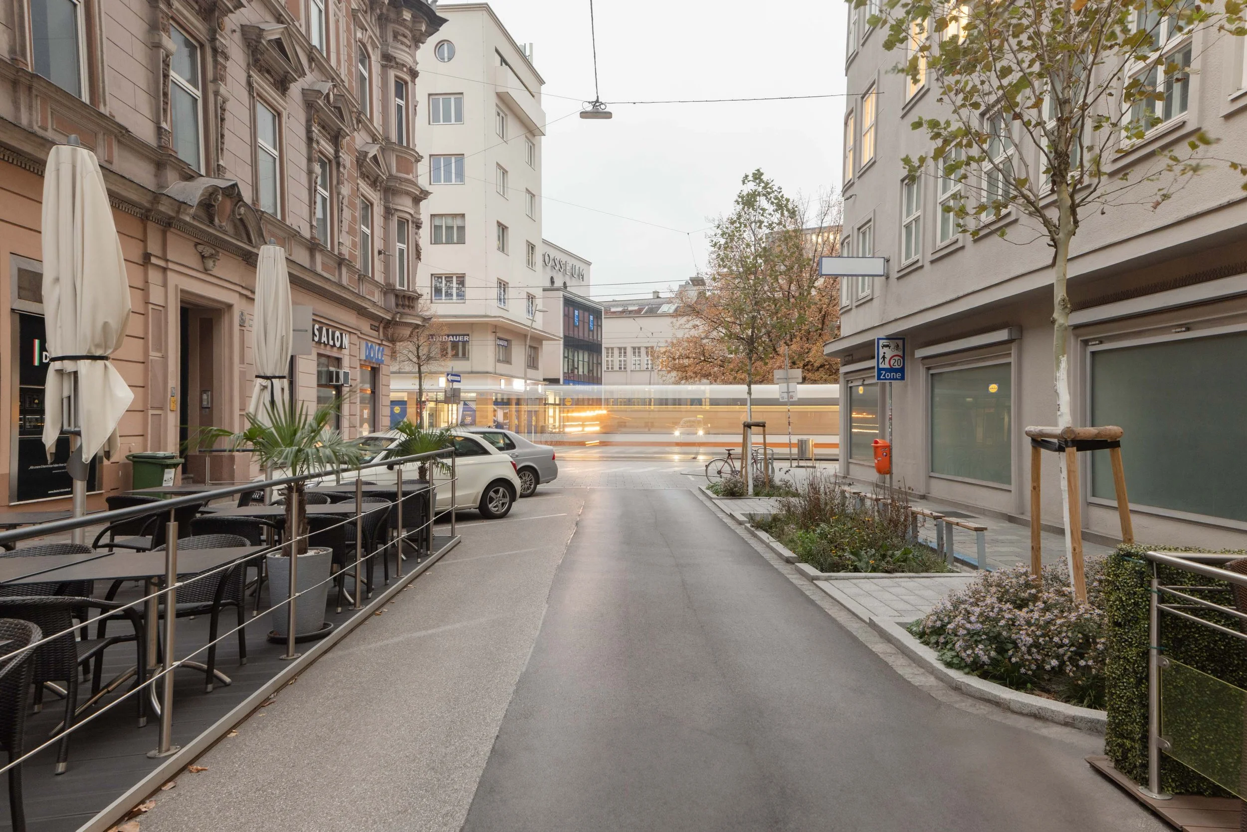 Um die Länge des Baumstandortes effizient zu nutzen, wurde ein Modulsystem für das Neustadtviertel entwickelt. Fixe Bestandteile eines jeden Moduls sind einerseits die Baumscheibe - eine Grünfläche als Standort des Baums - und anderseits das Tiefbeet. Im Tiefbeet wird als Beitrag zum lokalen Regenwassermanagement das Oberflächenwasser aus dem angrenzenden Einzugsgebiet der Straße gesammelt, gereinigt, versickert und dem Baum zur Verdunstung zur Verfügung gestellt. Die verbleibende Multifunktionsfläche bietet je nach Bedarf Platz für diverse Nutzungen: Grünfläche, Fahrradbügel, Hauseinfahrt, Schanigarten, Parklet etc..