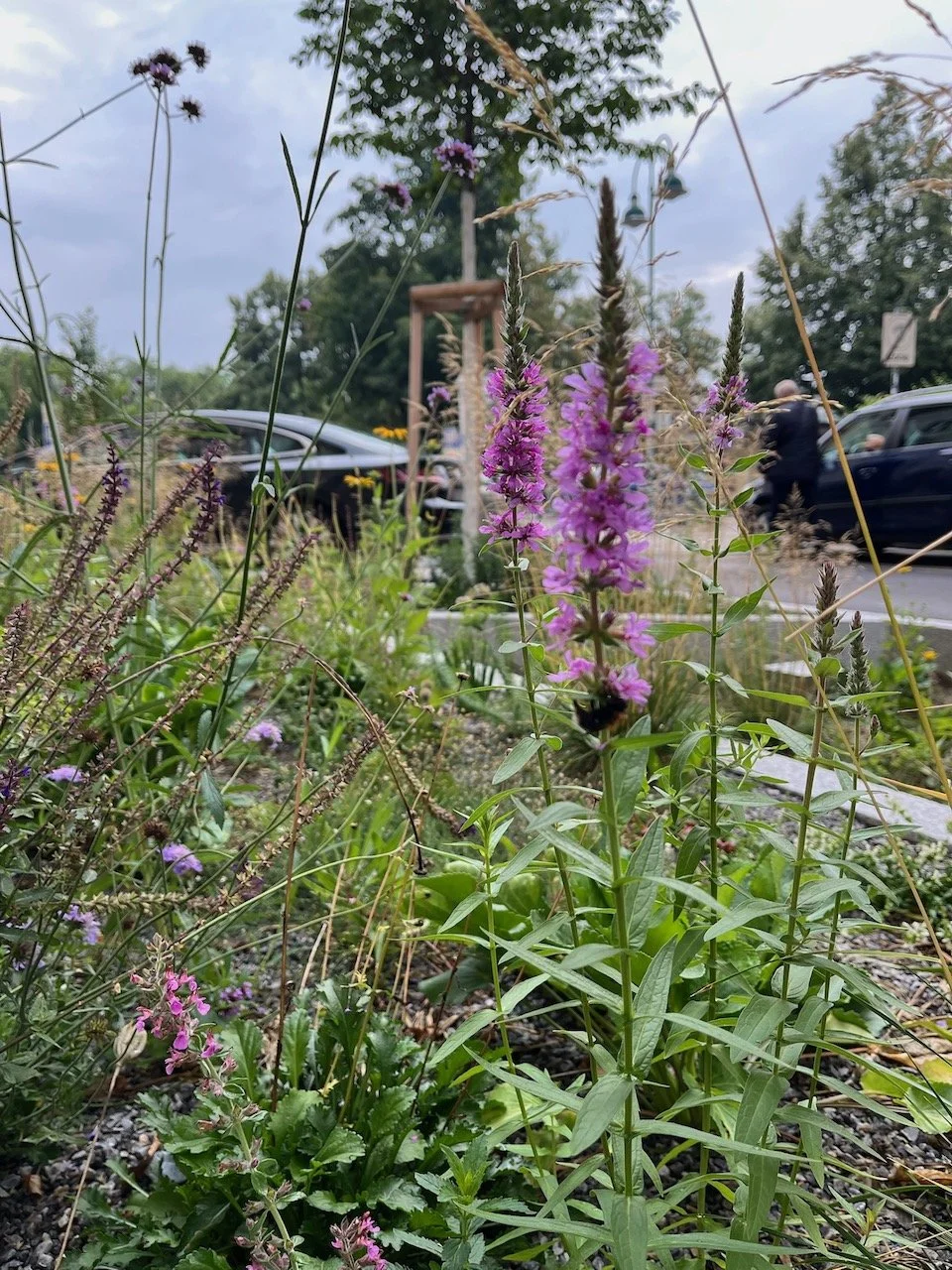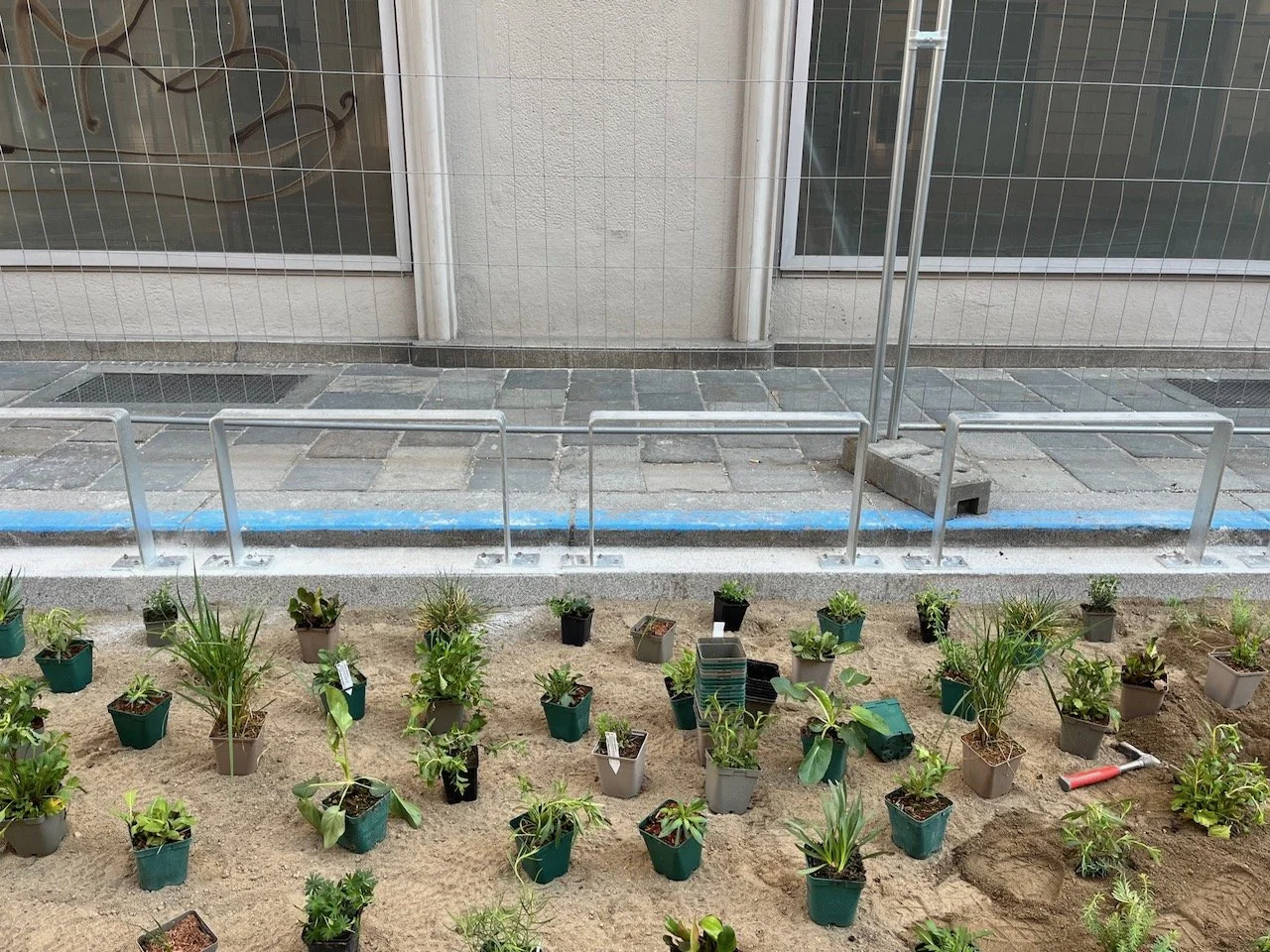 Tiefbeet mit Staudenmischpflanzung, zwei Monate nach der Pflanzung